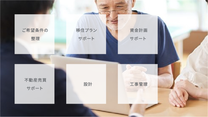 土地のご希望や住まいに関することはもちろん、移住後の生活や補助金のご利用など資金計画に至るまで、総合的にアドバイスいたします。
